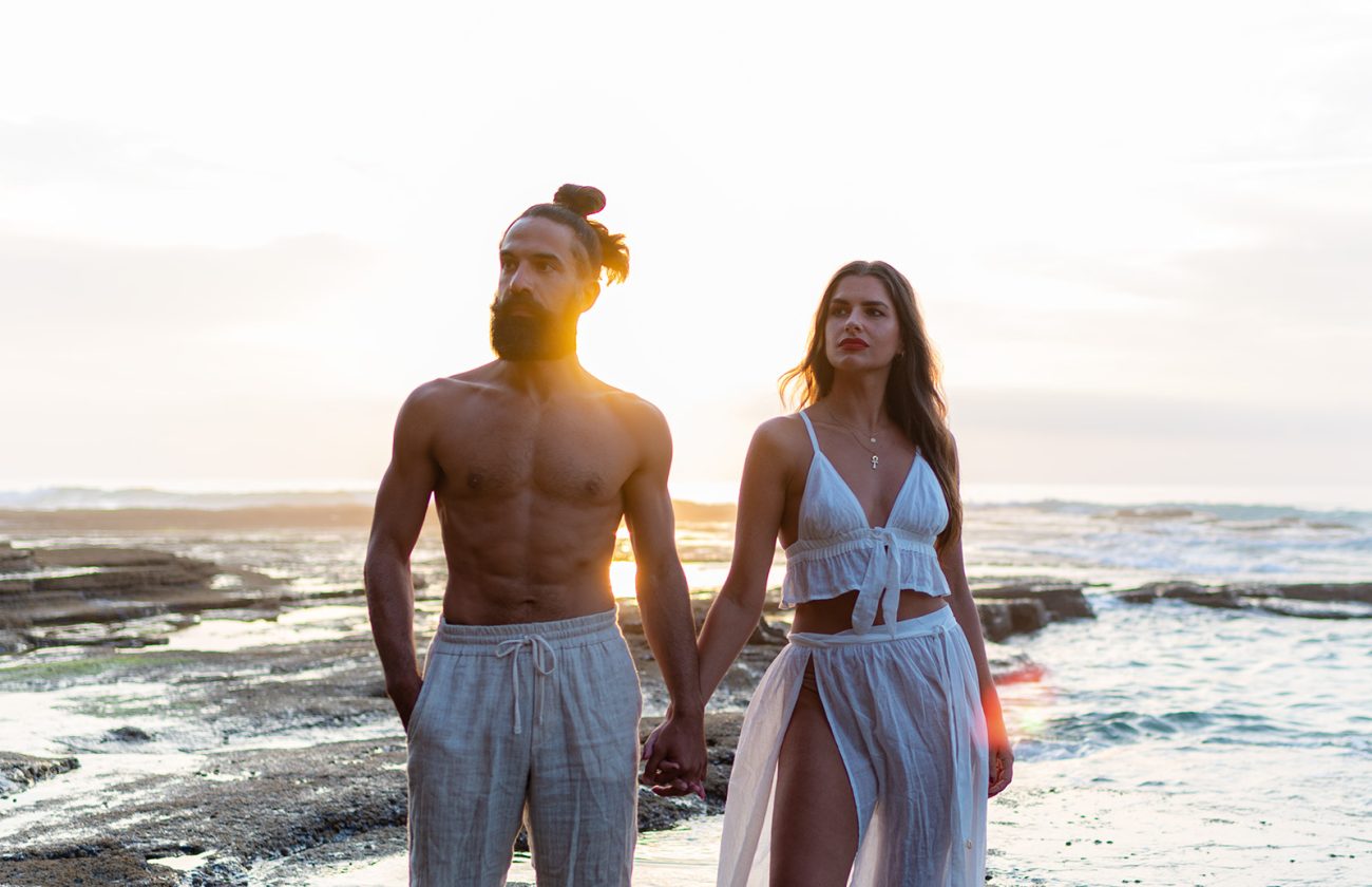 Beach walks in Praia de Monte Clérigo, while the sun sinks below the horizon. Portuguese beaches are the perfect place for an off-white edit. Air-dried sunkissed skin & white linen soaked in salty seawater.